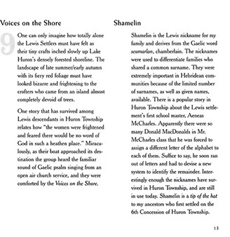In addition to genealogical information and rare old photos meticulously restored for this project, "1851 Exiles" provides a vivid portrayal of the day-to-day lives of Huron Township's Lewis folk. Drawing from personal correspondence, interviews, and family histories, the book offers a unique perspective on this resilient community. "1851 Exiles" serves as an invaluable companion to my CD, "The Silent Ones: A Legacy of the Highland Clearances," offering readers a deeper understanding of the Lewis Settlers' remarkable journey and enduring legacy.